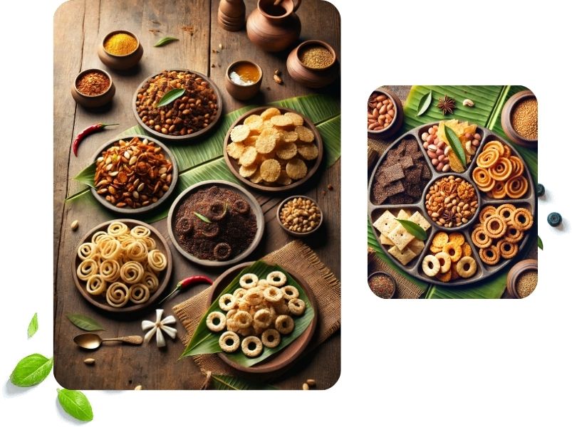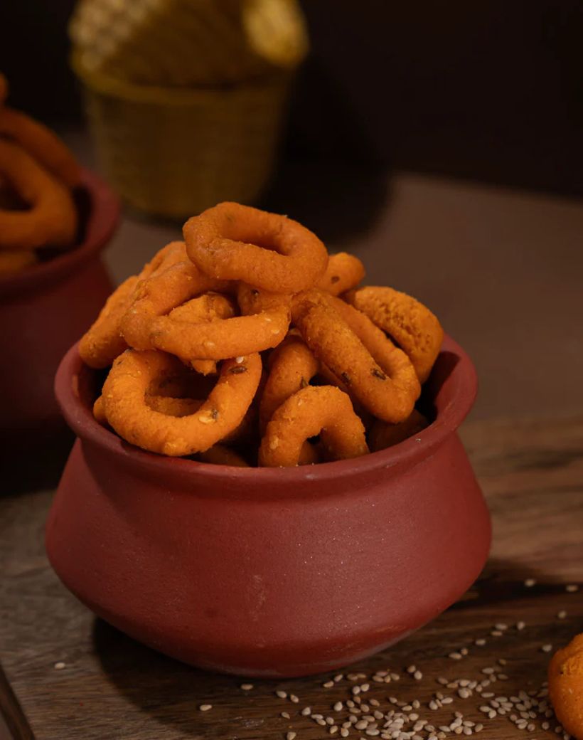 Indulge in our range of crunchy, spicy, and traditional Indian snacks, crafted with wholesome ingredients and authentic recipes. From the nutritious Ragi Mixture to the classic Nuvvula Chakalu and festival favorites like Sakinalu and Chakodi, each bite delivers a burst of flavor and nostalgia. Perfect for tea-time, festive gifting, or guilt-free munching, these snacks combine taste with tradition in every crunchy bite.