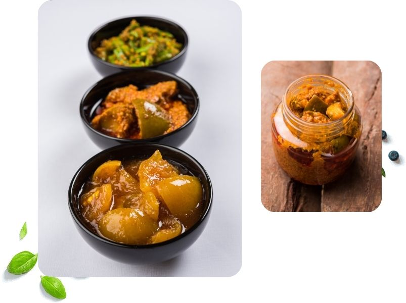 Explore the bold and tangy world of Andhra pickles with our handcrafted selection, made using traditional methods and premium ingredients. Enjoy the timeless taste of Mango Pickle and the sour-spicy punch of Gongura Pickle, while the fiery Pandumirchi Pickle adds heat to every bite. Relish the vitamin-rich Usirikaya Pickle and the zesty, flavorful Tomato Pickle. For lovers of sharp, tangy notes, Lemon Pickle and Tamarind Pickle bring a delicious balance of spice and sourness. Don’t miss the protein-packed, spicy indulgence of our signature Chicken Pickle, a true Andhra delight.