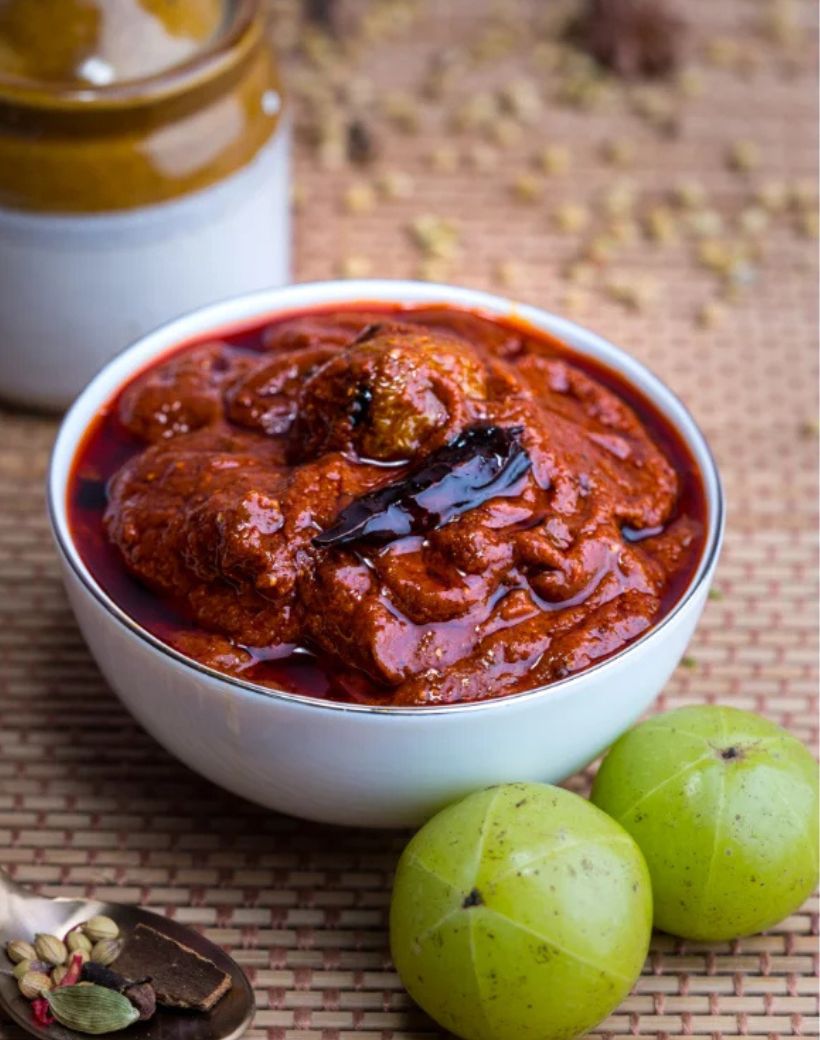 Usirikaya (Amla) Pickle is a tangy, vitamin-rich pickle made from fresh Indian gooseberries and traditional spices.