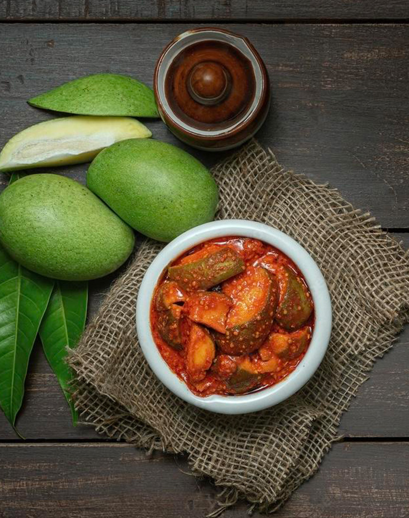 Mango Pickle is a classic Indian favorite made with raw mangoes, mustard seeds, and fiery spices.