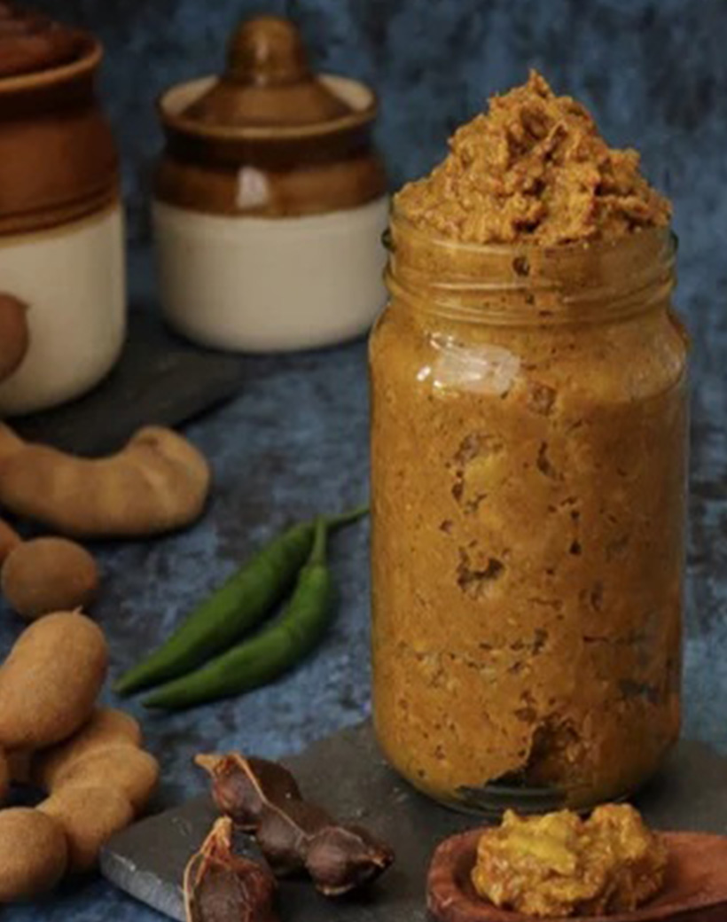 Tamarind Pickle is a bold, tangy condiment made with ripe tamarind, spices, and garlic—bursting with authentic Andhra flavor.